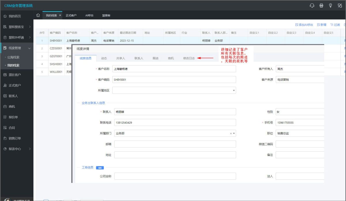 线索是CRM系统中处于早期阶段的潜在客户记录。它可以是一个联系人信息、公司名称或者一次询问、一次点击等表示有潜在购买意向的行为记录。销售人员通过对线索的跟踪、培育和评估,来判断是否能将其转化为具有更高价值的机会或正式客户。