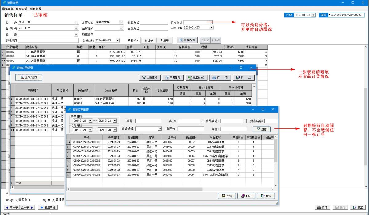 订单执行状况:客户订货多少,发了多少,剩余多少,执行状态一目了然。