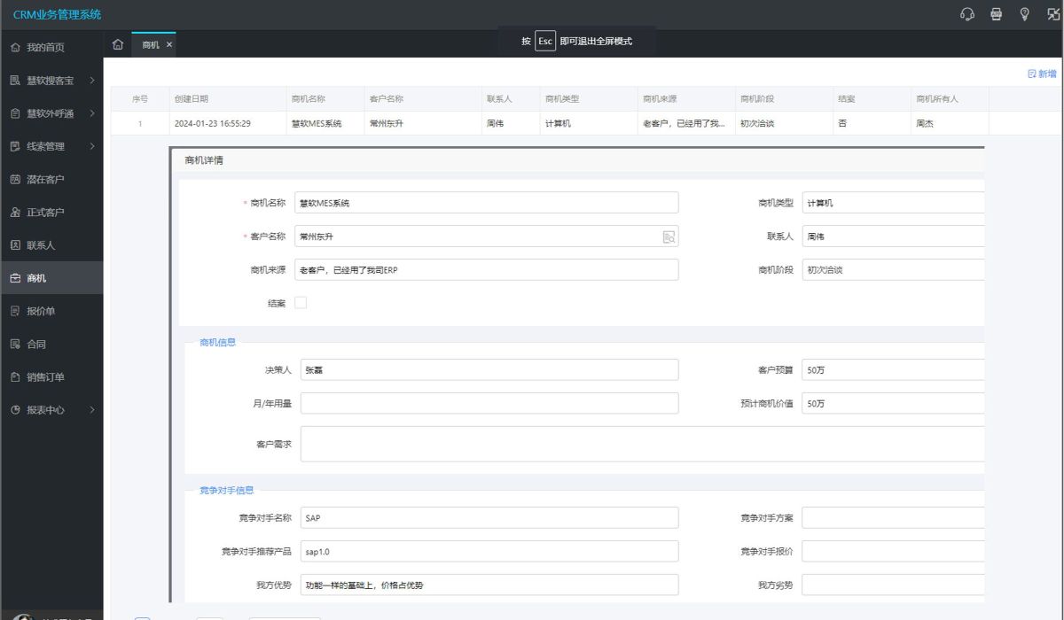 在CRM系统中,商机会被记录并跟踪整个销售周期的过程,包括商机来源、预计金额、当前阶段(如初步接触、方案演示、商务谈判等)、负责人、相关联系人、竞争对手信息等,帮助销售人员有效管理和推进销售进程,最终促成交易达成。